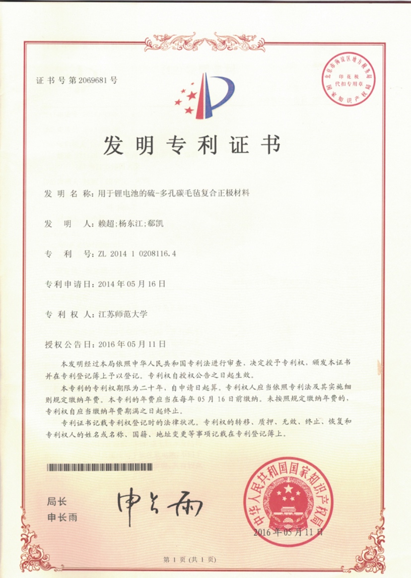 用于锂电池的硫-多空碳毛毡复合正极材料